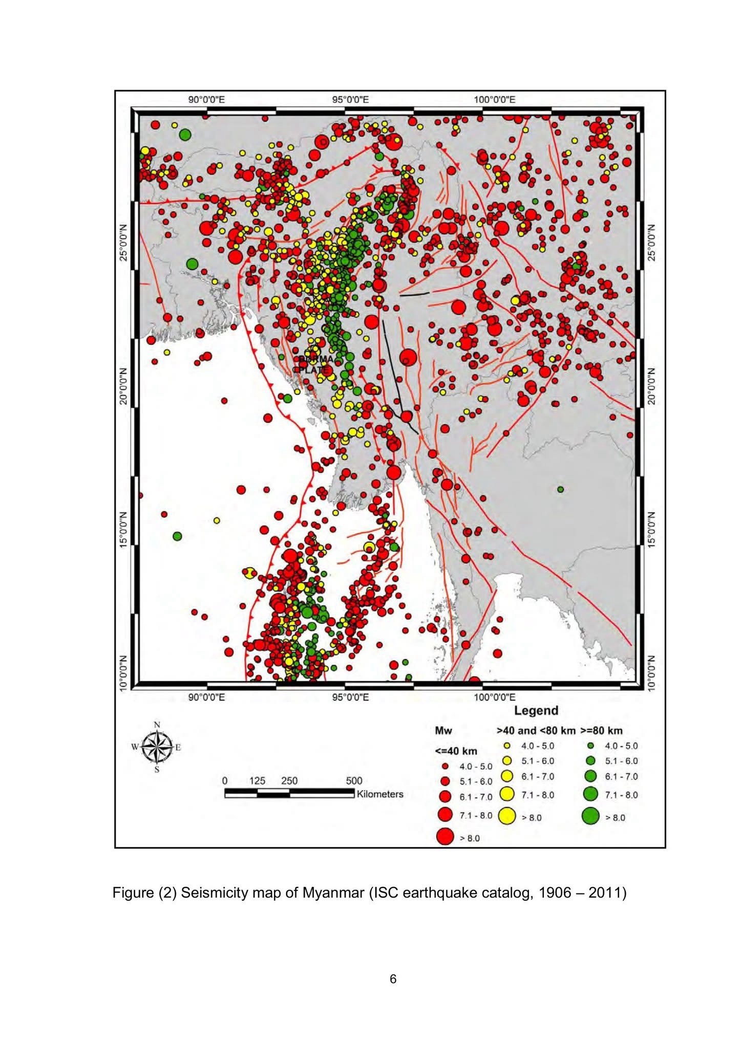 This section discusses the seismicity, major faults, and historical earthquakes in Myanmar, particularly focusing on the Bago Region.
