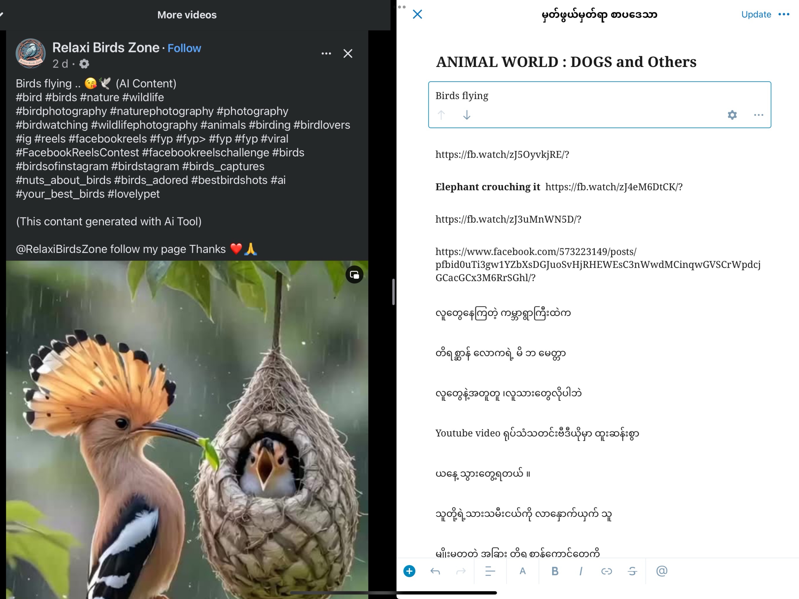 Birds flying https://fb.watch/zJ5OyvkjRE/? ငှက်သတ္တဝါလေးတွေရဲ့ သ းသမဣးပေ့်ထားတဲ့ မိခင် မေတ္တာ https://fb.watch/zJ6mTTLTOB/?