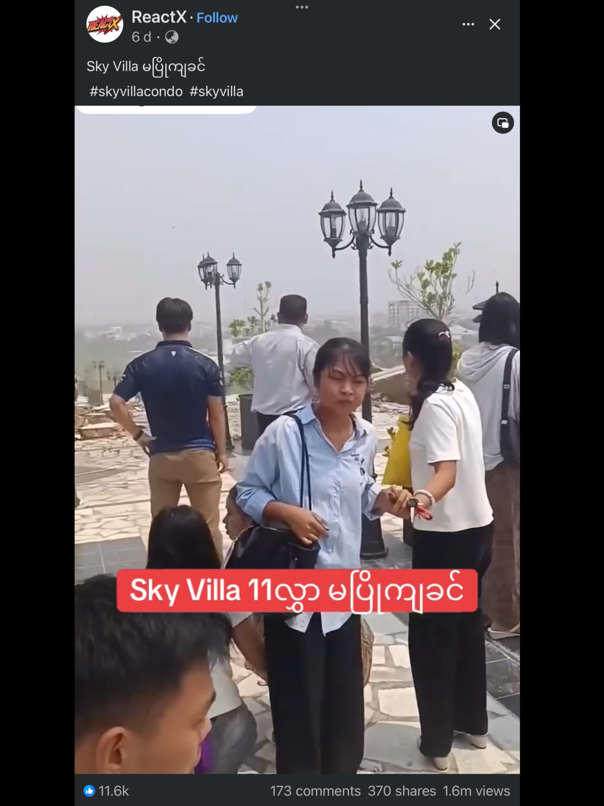 Sky Villa ကနေ တစ်မိသားစုလုံး လွတ်မြောက် လာပေမဲ့ အသက်ရှင်နေရတာကို မယုံကြည် နိုင်တော့သူ villa ရဲ့ ၆ လွှာမှာနေထိုင်တဲ့ မမာမာက သူ့အခန်းအလွှာကို တူးဖော်နေပြီဆိုတာကြောင့် ပစ္စည်းတွေလာရောက်စောင့်ကြည့် ယူဆောင်ဖို့ ဆက်သွယ်ခေါ်ယူထားလို့ ရောက်ရှိနေတာပါ။ အဲဒီနေ့က သူနဲ့ ကလေးသုံးဦးအပါအဝင် အဖော်နေထိုင်သူအမျိုးသမီးကြီးတစ်ဦးပါ အိမ်မှာရှိမနေတဲ့အတွက် အသက်ဘေးက လွတ်မြောက်ခဲ့ကြပါတယ်။ စစ်ဘေးရှောင်ရင်း နေရာအတည်တကျမရှိဘဲ မကြာခဏ ပြောင်းရွေ့နေထိုင်ရတဲ့ မမာမာက အခုလိုဘေးအန္တရာယ်ပါ ထပ်မံကြုံတွေ့ရတဲ့အခါ သူတကယ်အသက်ရှင်နေတာလားဆိုတာကို ယုံရခက်နေပြီလို့ ဆိုပါတယ်။