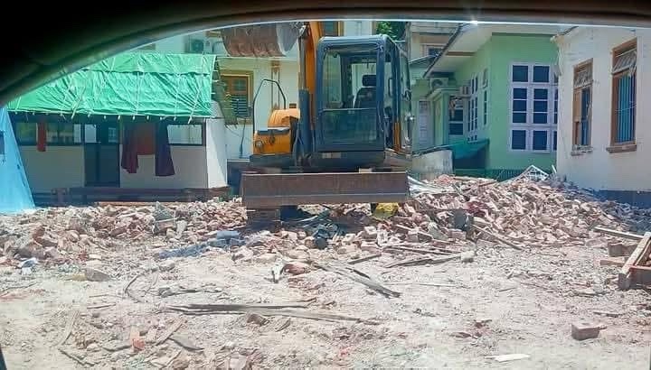 သံဃာတော်များ ငြိမ်သက်စွာ ဆွမ်းဘုဉ်းပေးကြတဲ့ ဆွမ်းစားဆောင်လည်း ပျက်စီးသွားပါပြီ။