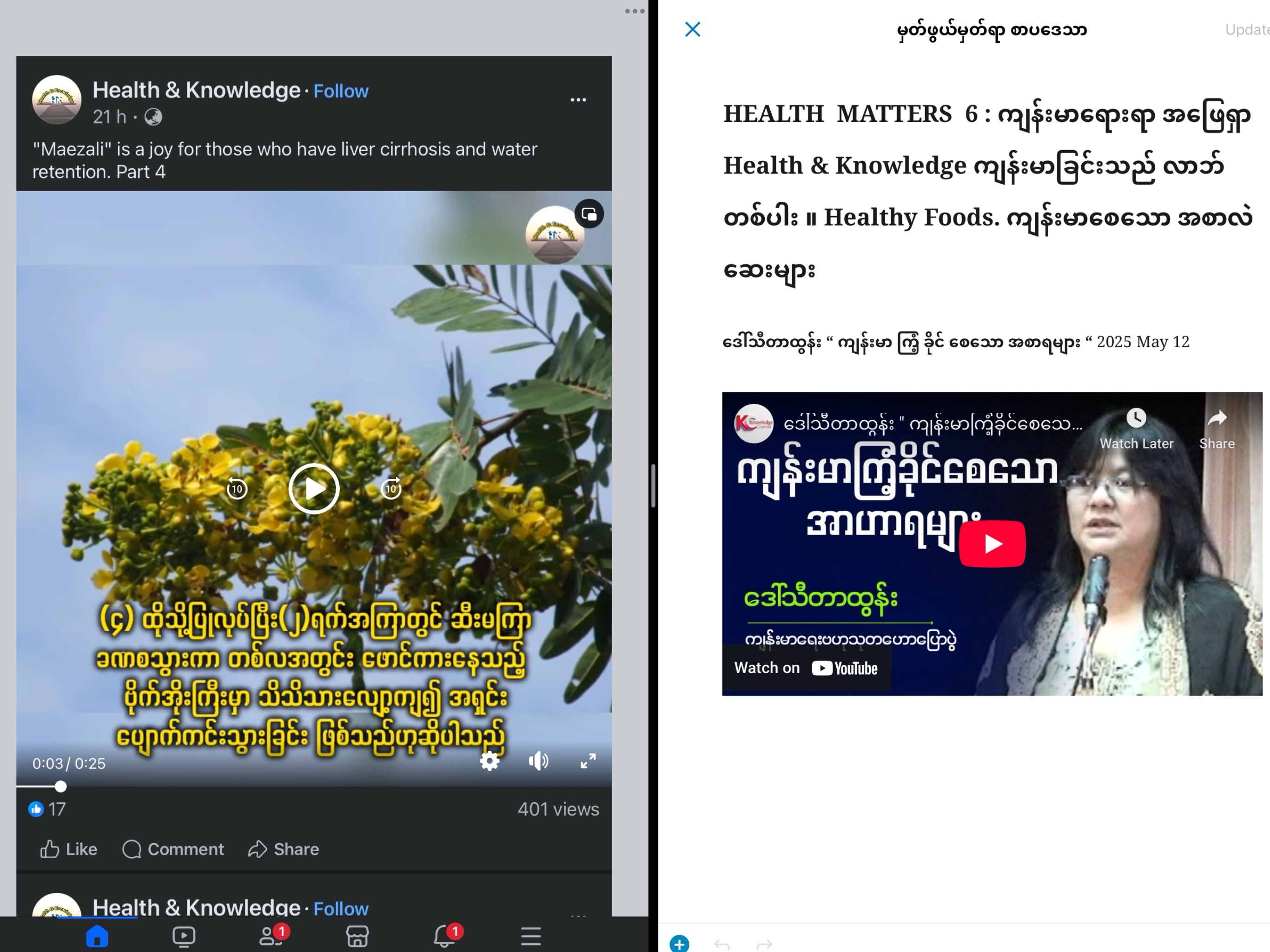 ဒေါ်သီတာထွန်း “ ကျန်းမာ ကြံ့ ခိုင် စေသော အစာရများ “ 2025 May 12