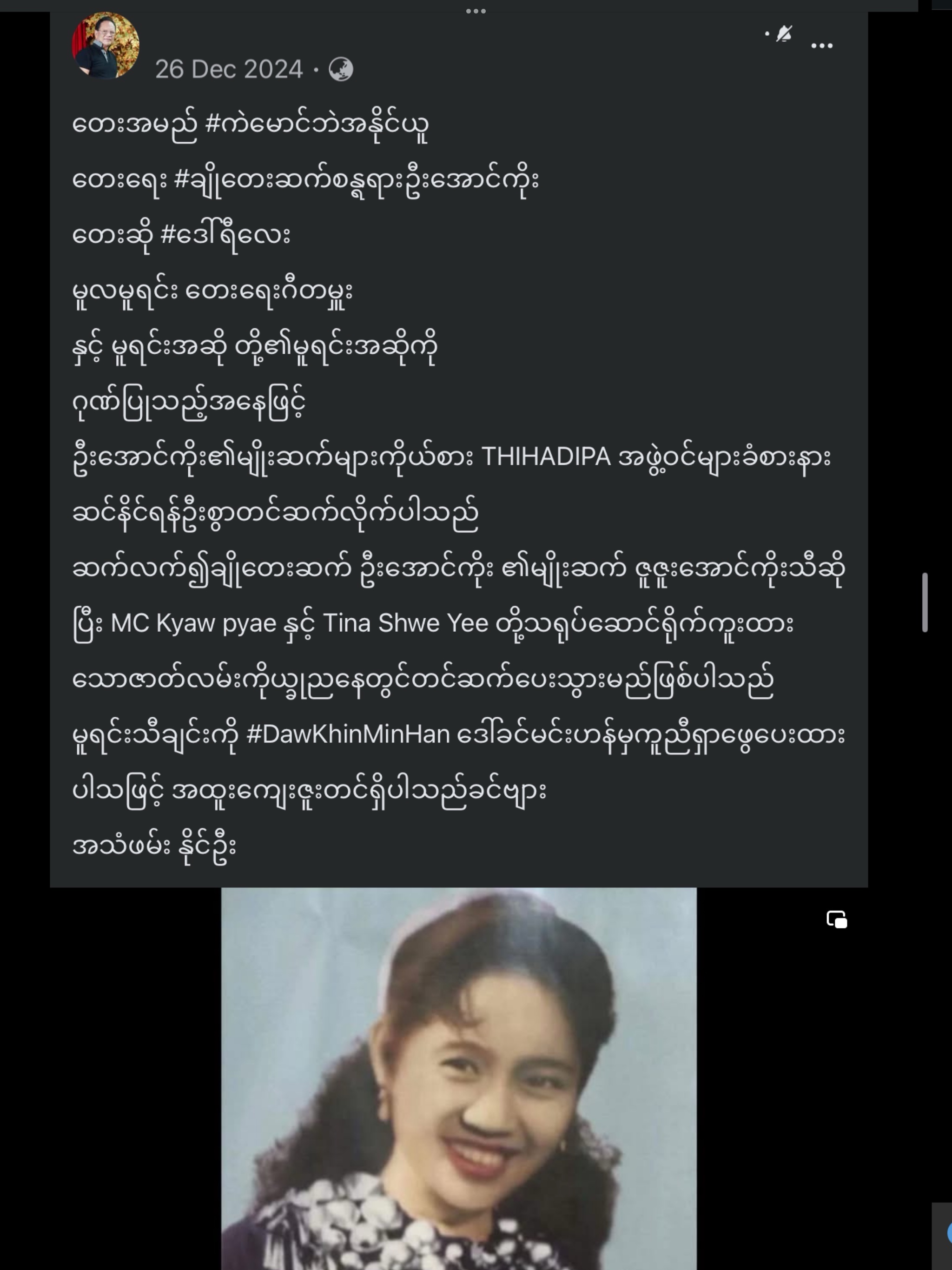 နဂိုရ် ယဉ်နုထွေး https://www.facebook.com/story.php?story_fbid=1870819893455183&id=100024702511979