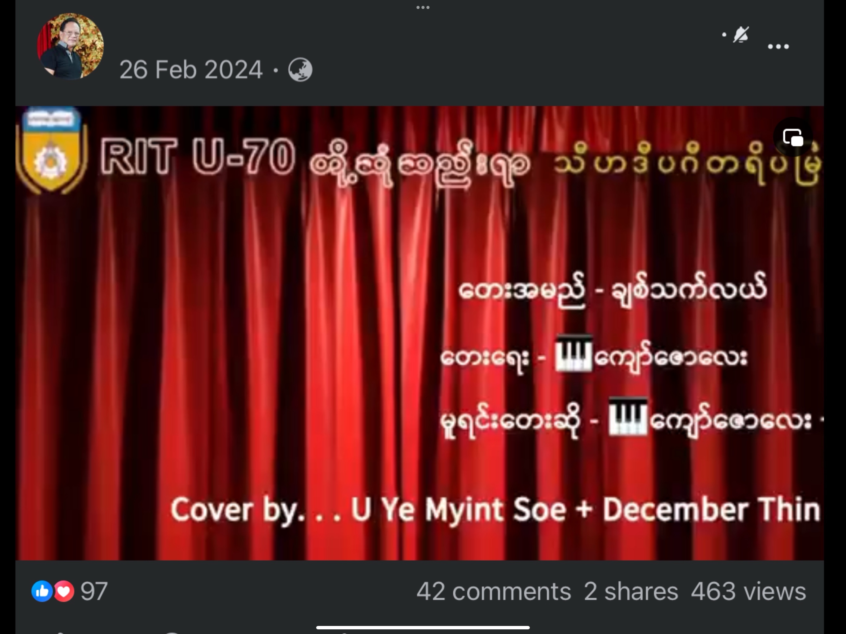 ဒေါ်မာမာအေးသီဆိုခဲ့တဲ့ လွမ်းမေယုတောင် ဆိုတဲ့သီချင်းလေးကိုကြိုက်နှစ်သက်လွန်းလို့ ပြန်လည်သီဆိုတင်ဆက်လိုက်ရပါတယ် တေးရေးမှာတော့ ဘိုကလေးတင့်အောင်(ဦး)+ဂီတလုလင်မောင်ကိုကို (ဦး) ဟူ၍သိရပါသည် — with U Hla Baw and 93 others.