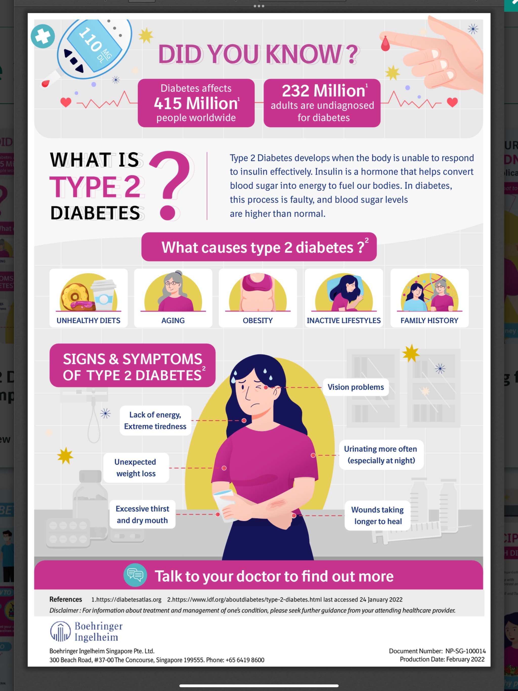 ဆီချို ရေားဂါ က တကမ္ဘာလုံး လူဦးရေ ၄၁၅ သန်းကို ထိခိုက်သက်ရောက် ဖြစ်ပွါး နေကြသည် ။ ကမ္ဘာပေါ် ရှိ လူကြီးဦးရေ ၂၃၂ သန်းတို့သည် မိမိကိုယ်မိမိဆီးချိုရှိနေမှန်း ဆီးချိုရောဂွရှိမရှိ ဆေးစစ်ဆေးခြင်း မ ပြုလုပ်ကြ။