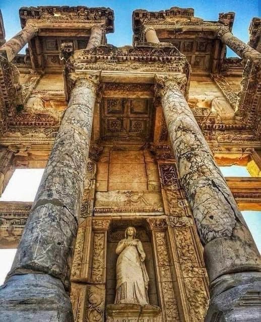 13-The Library of Celsus, built around 110 CE in the ancient city of Ephesus (modern-day Turkey), was commissioned by Gaius Julius Aquila in honor of his father, Tiberius Julius Celsus Polemaeanus, a Roman governor of Asia.