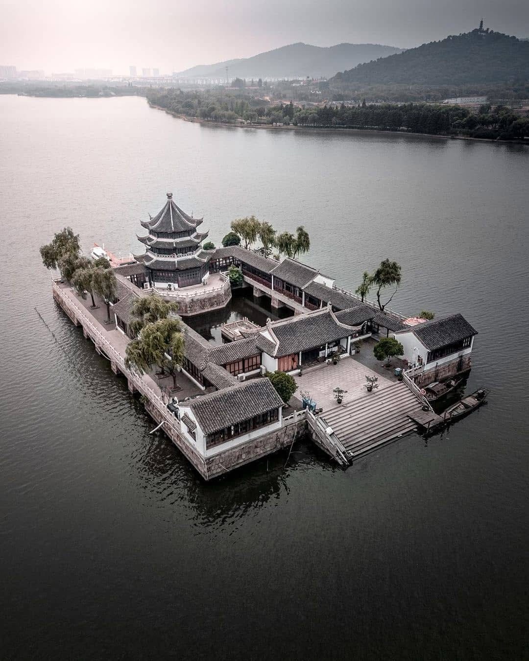 The Tianjing Pavilion was constructed in 1612 during the Ming dynasty, gracefully situated on a small island at the center of Lake Shi in Suzhou, China.