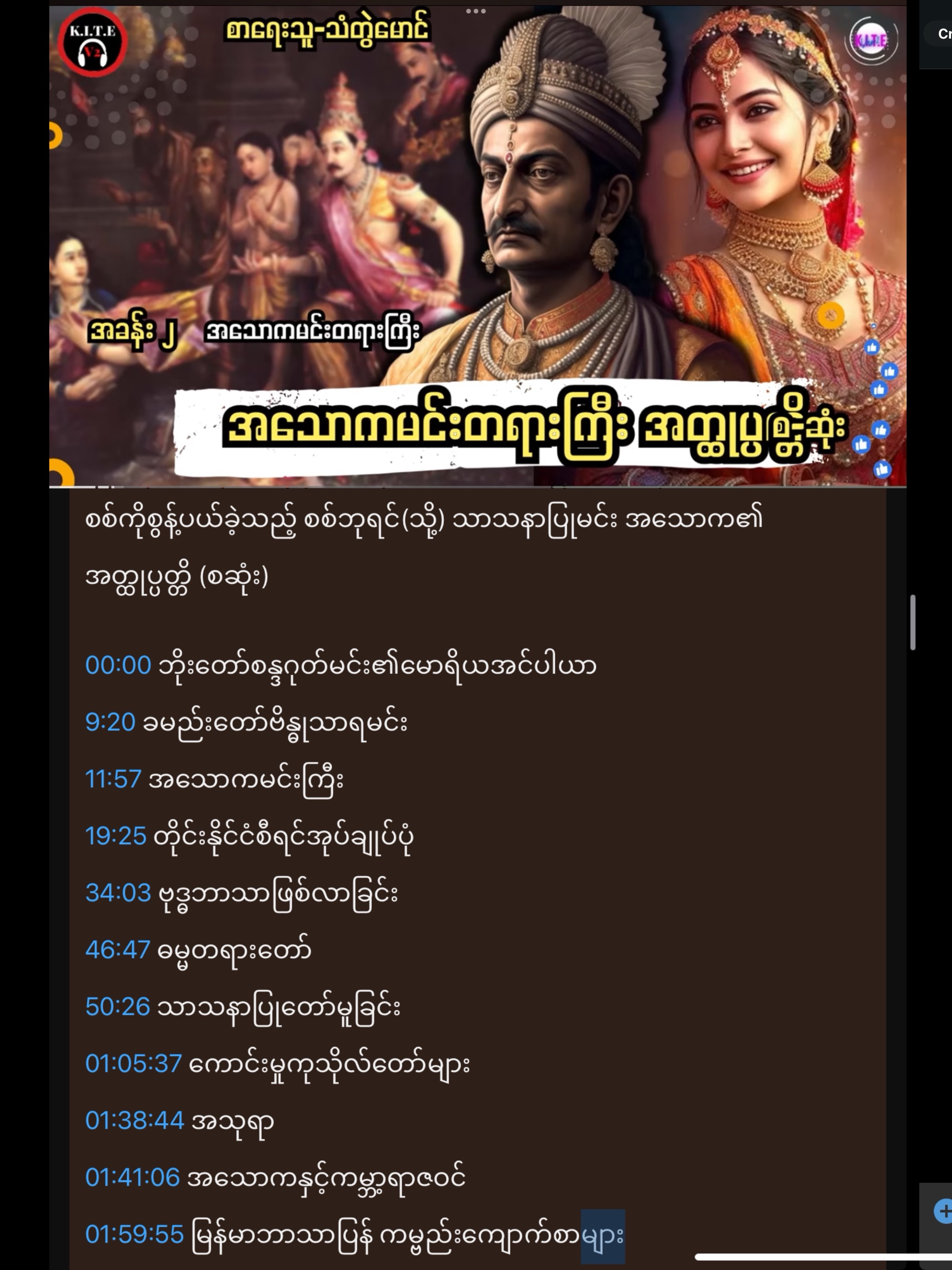 https://youtu.be/Gb7z5spBkf8?si=SO1jW8iYojVkVouo။ စစ်ကိုစွန့်ပယ်ခဲ့သည့် စစ်ဘုရင်(သို့) သာသနာပြုမင်း အသောက၏ အတ္ထုပ္ပတ္တိ (စဆုံး)