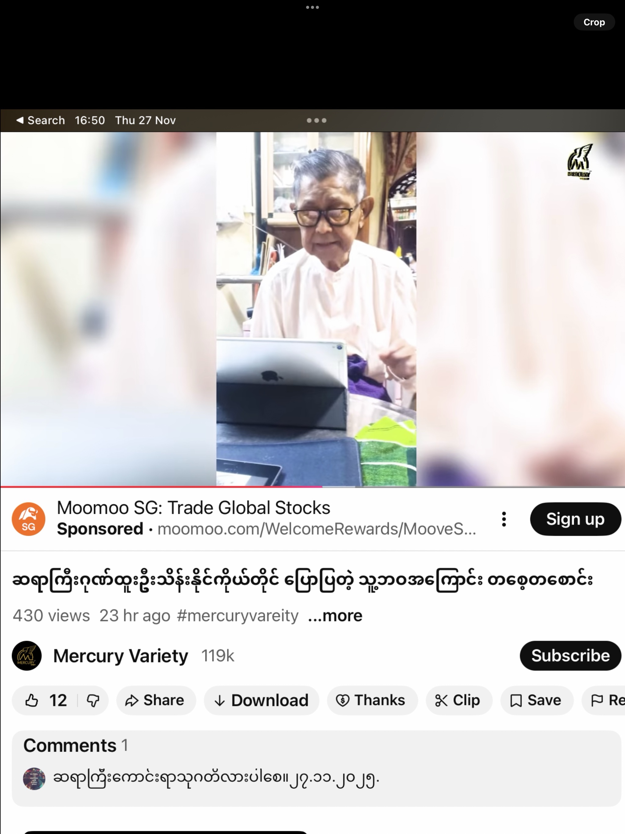 November 2025 ကွယ်လွန် သွားခဲ့သော ဆရာကြီးဂုဏ်ထူး ဦးသိန်းနိုင် ကိုယ်တိုင် ပြောပြတဲ့ သူ့ဘဝအကြောင်း တစေ့တစောင်း https://youtu.be/7KFCzHL6_n8?si=VOZQroe2J3hikFcY. ဆရာကြီးဂုဏ်ထူးဦးသိန်းနိုင်ကိုယ်တိုင် ပြောပြတဲ့ ဆရာကြီးဘဝအကြောင်းတစေ့တစောင်းကို Mercury Variety က ဆရာကြီးအတွက်အမှတ်တရအနေနဲ့ ပြန်လည်တင်ဆက်ပေးလိုက်ပါတယ်။ mercuryvareity #မြန်မာ #Mercury #ဂုဏ်ထူးဦးသိန်းနိုင် #ဘဝအကြောင်း