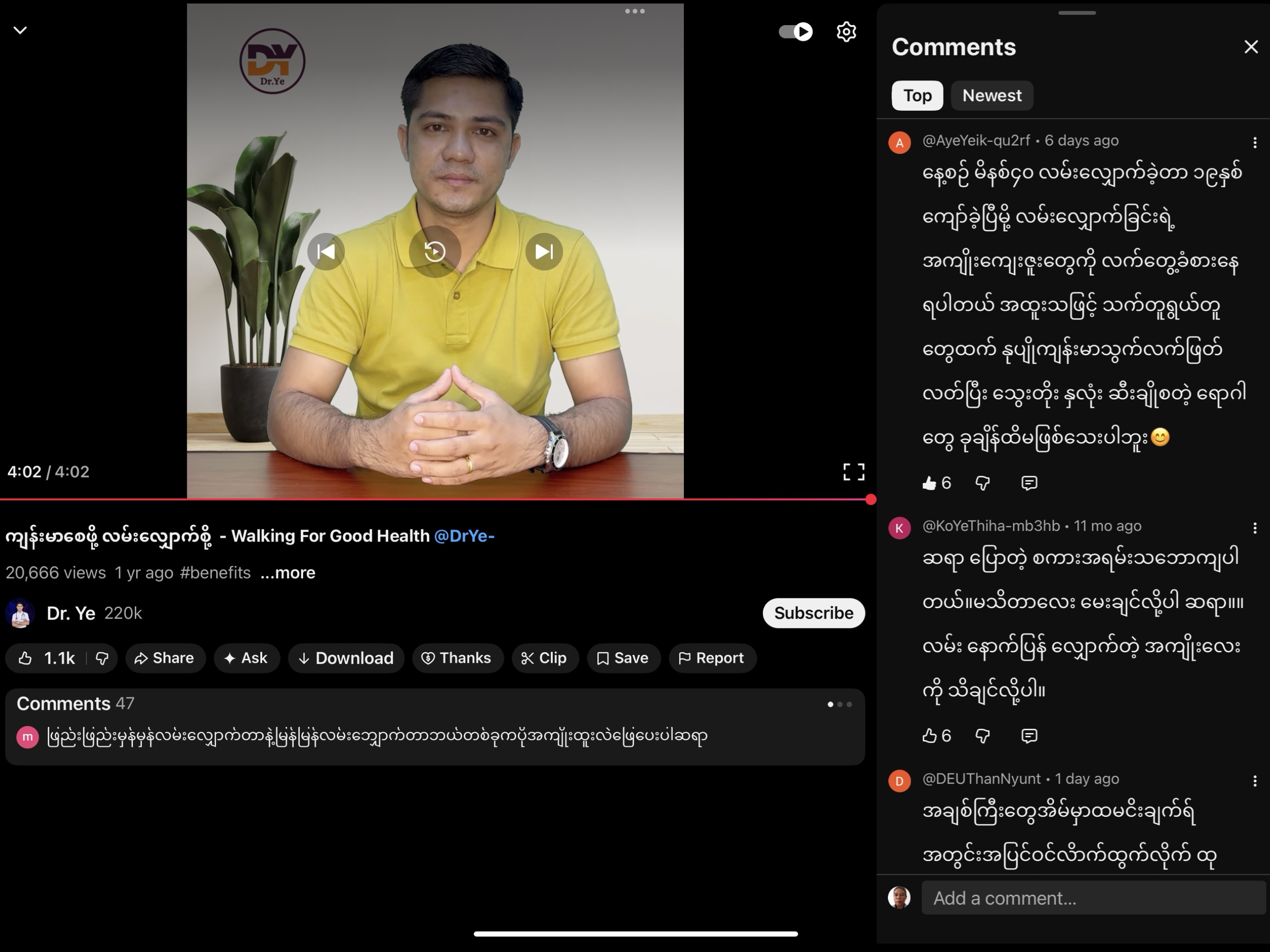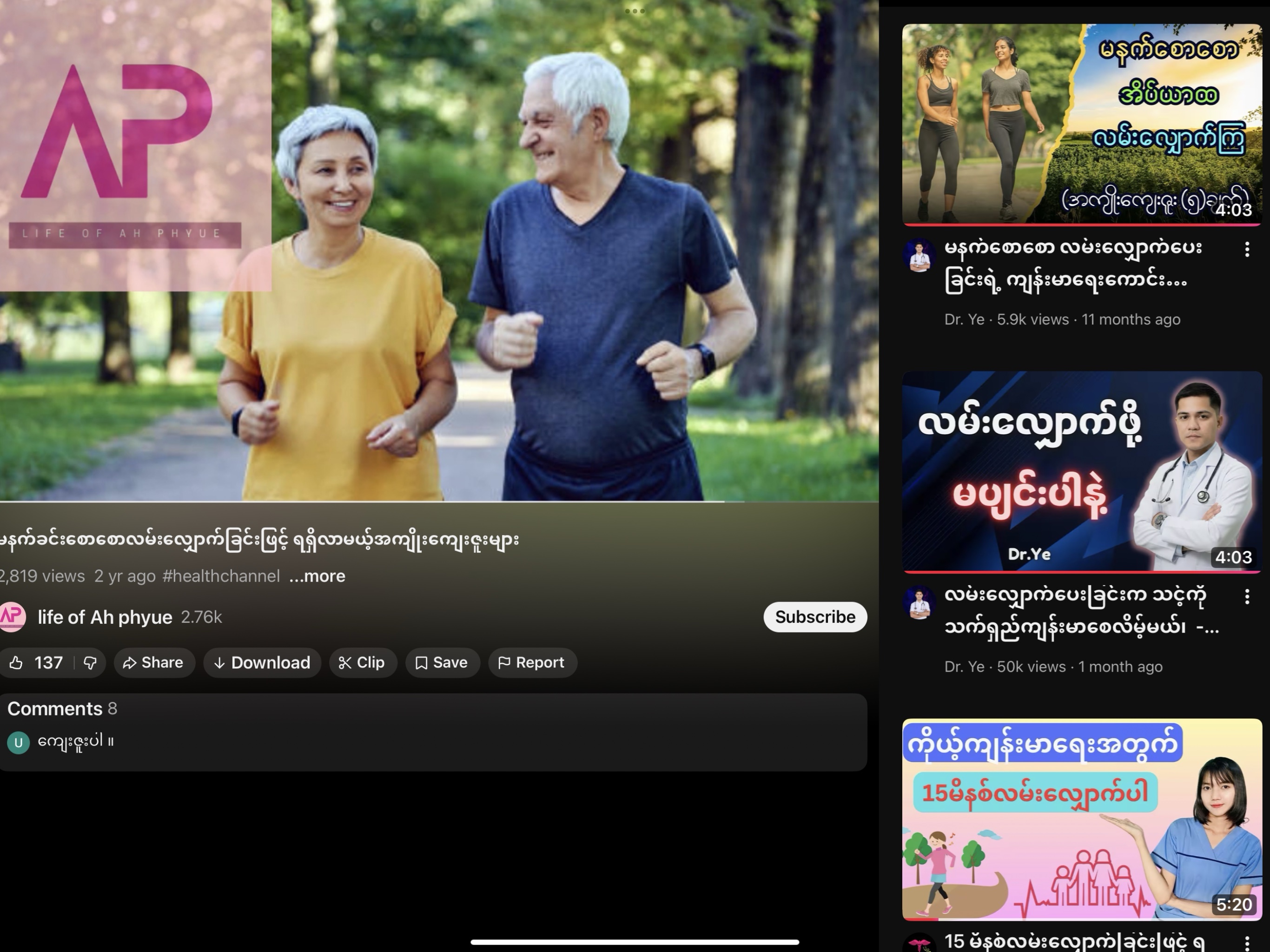 ၉။ လမ်းလျှောက် ခြင်း နဲ့ ကျန်းမာရေး https://youtu.be/Yl5GKZUVFuE?si=e8Wj7Q5EHmJeAJ9T