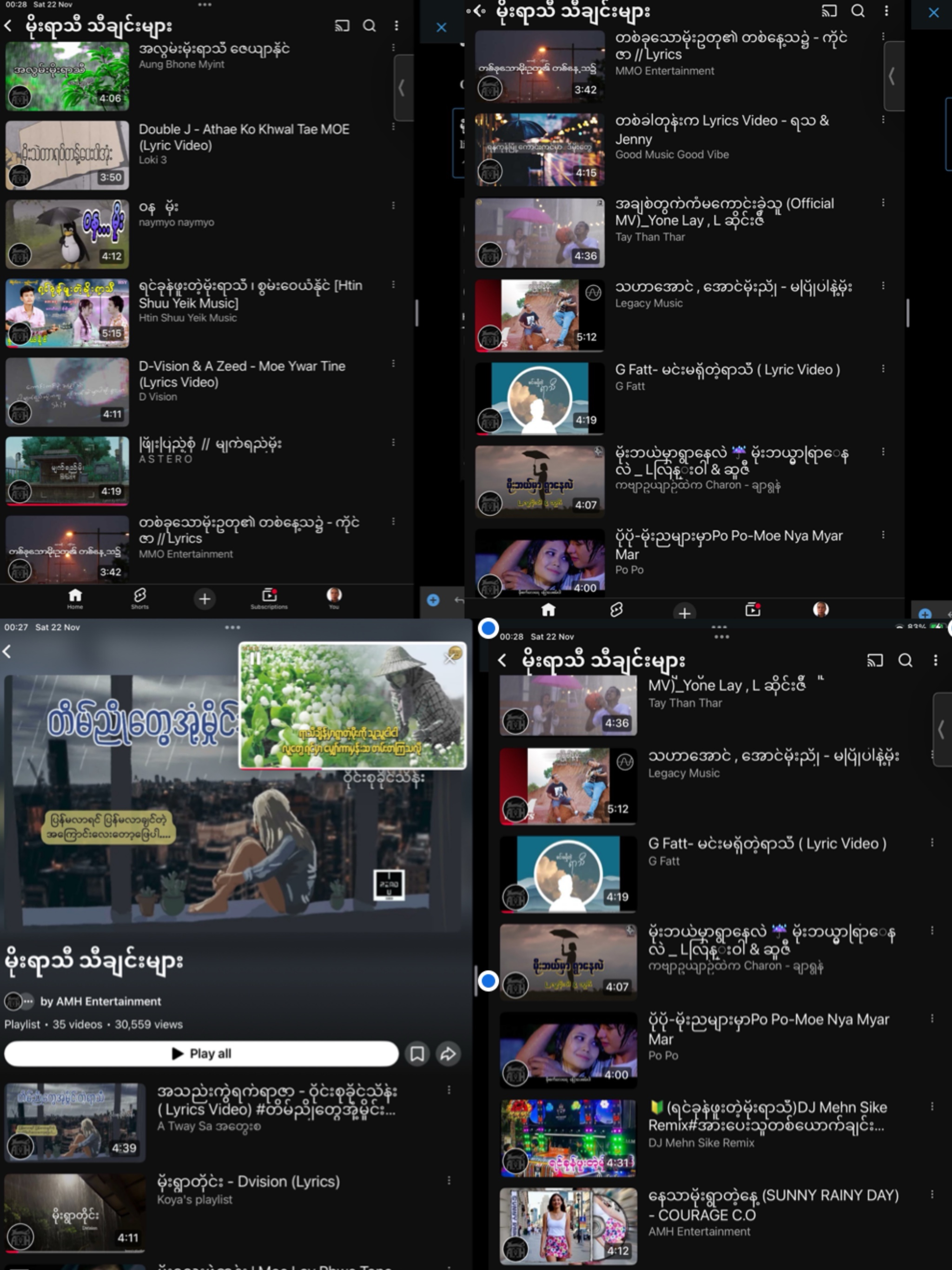 မိုးရာသီ သီချင်းများ 35 videos https://youtube.com/playlist?list=PLq6mUGJDDEGX3vbSFi131PwiYEZE8yaPE&si=loafEPuWys_t8ZD8