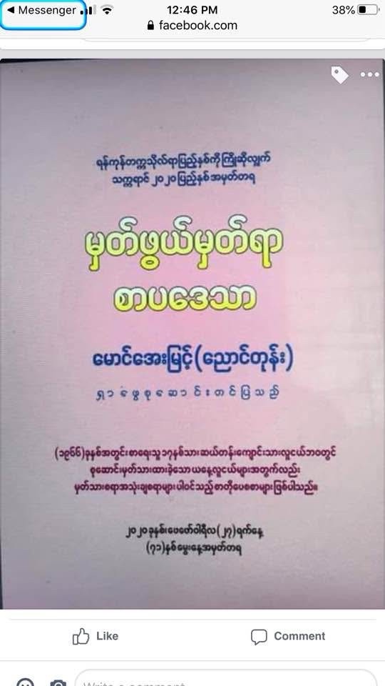 ၂၀၂၀ပြည့်နှစ် အမှတ်တရ စာအုပ်