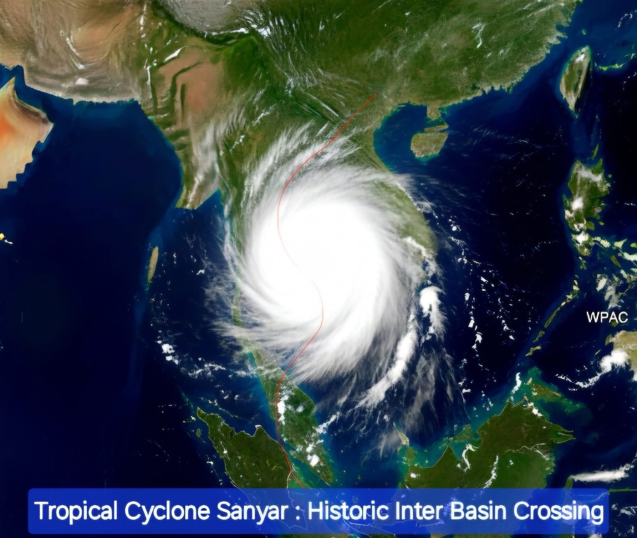 တွေအရ Senyar ဟာ အိန္ဒိယသမုဒ္ဒရာဘက်ခြမ်းကနေ အနောက်ပစိဖိတ်သမုဒ္ဒရာဘက်ကို ပထမဆုံးအကြိမ် ကူးပြောင်းသွားတဲ့ မှတ်တမ်းဝင် မုန်တိုင်း ဖြစ်လာခဲ့ပါတယ်။ ဒီမုန်တိုင်းဟာ မလက္ကာရေလက် ကြားအနီးမှာ စတင်ဖွဲ့စည်းခဲ့ပါတယ်။ အီကွေတာ