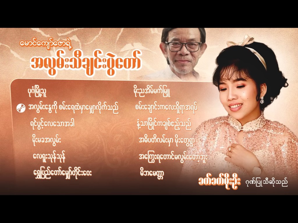 မြခြူသံ မာမ အေး/ ကြည်ကြည်ဌေး https://youtu.be/BxJRMTm5gkY?si=HS2HPE5Koxlgn3D1