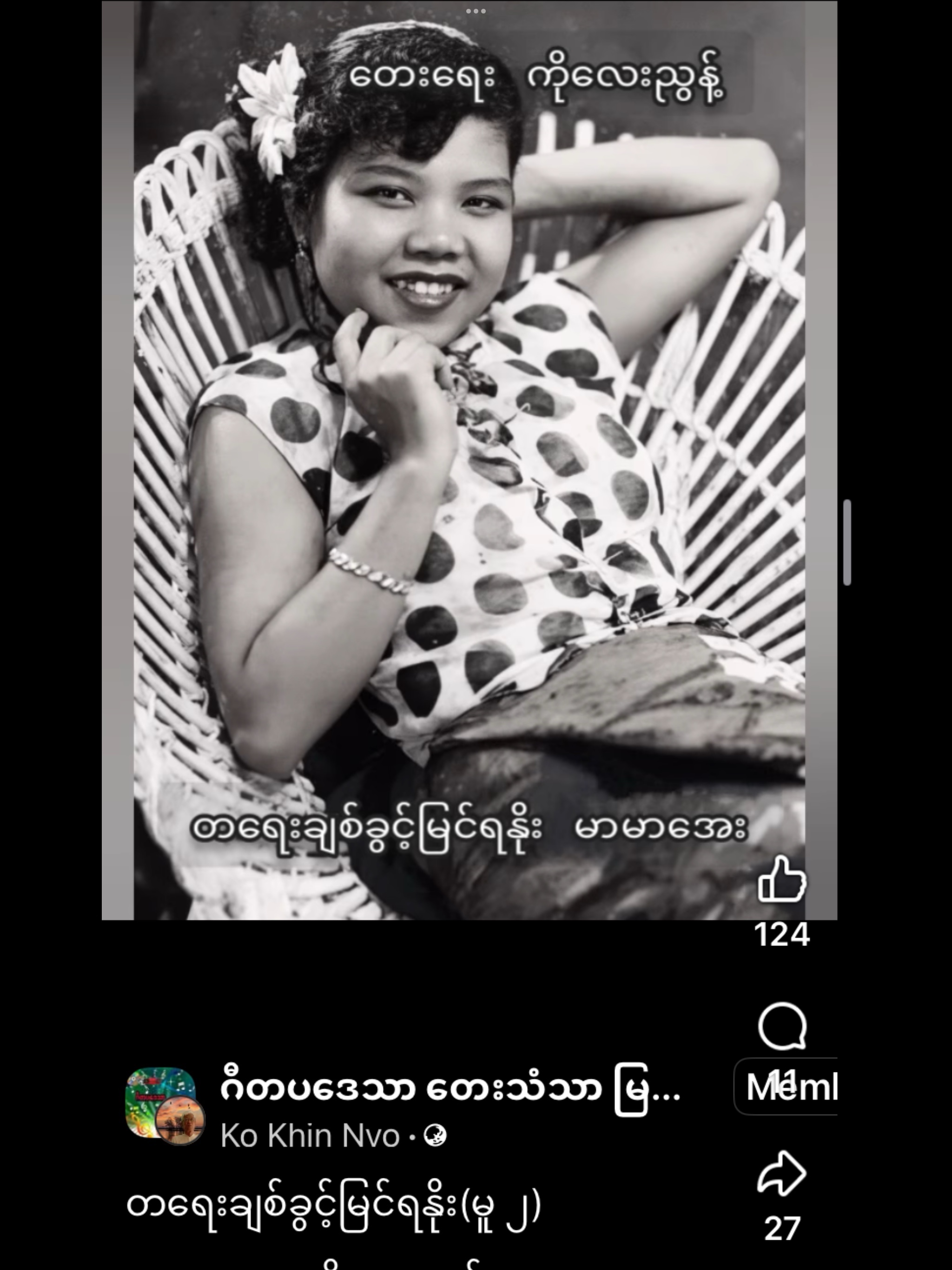 ရှာပုံတော် -မာမာအေး တေးရေး မောင်ဘမင်း https://m.facebook.com/groups/211533522724799/permalink/2001327857078681/?