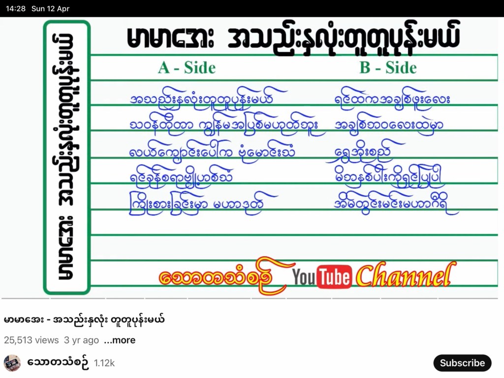 သောတသံစဉ် Youtube Channel မှ မျှဝေတင်ဆက် ပေးလိုက်ရပါသည်။