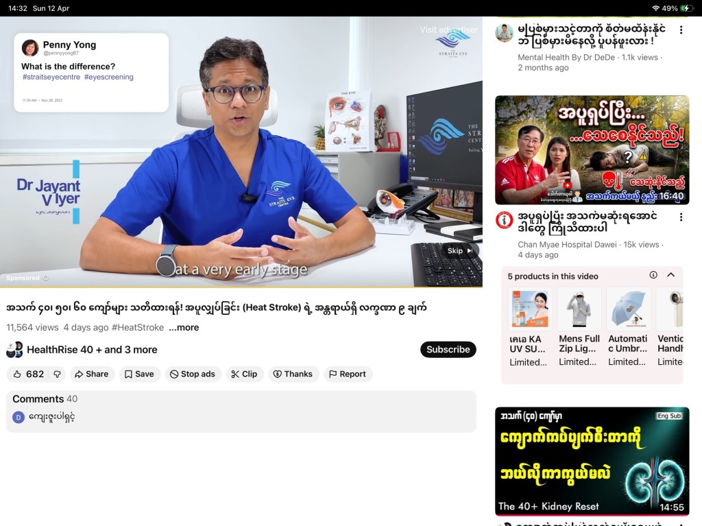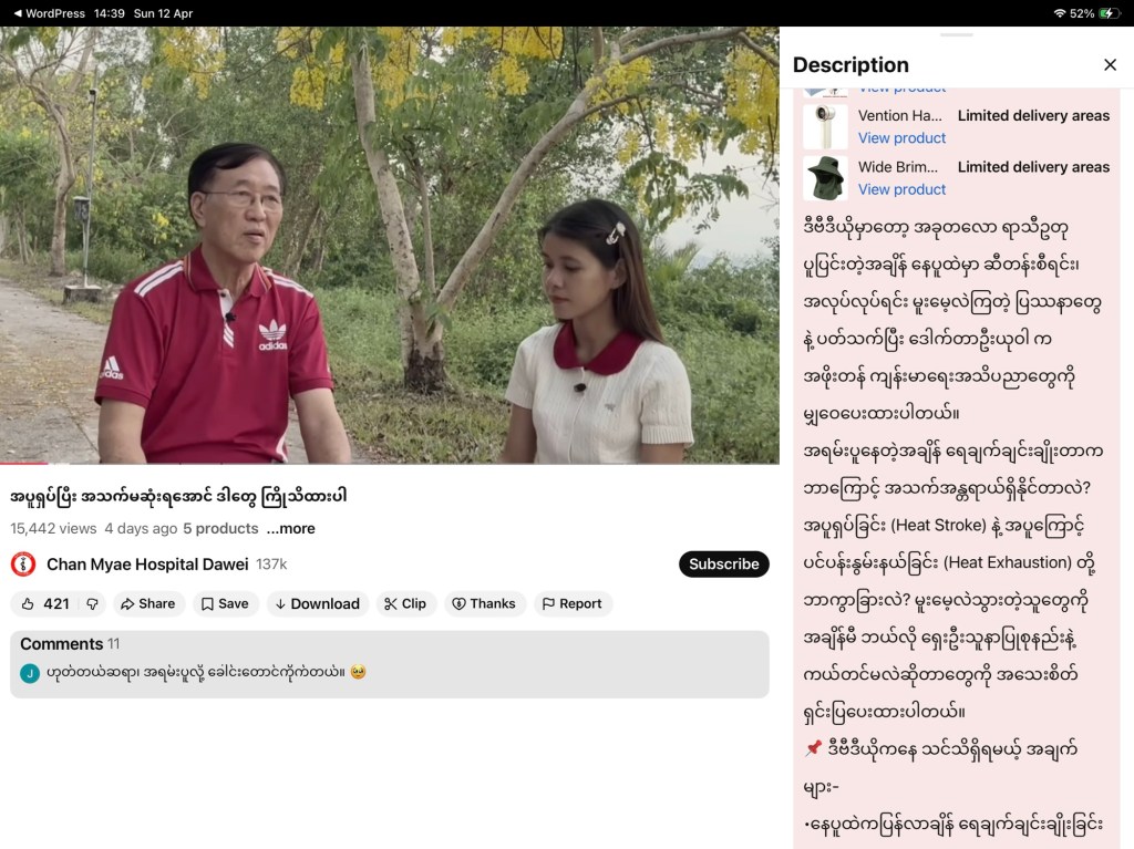 အသက် ၄၀၊ ၅၀၊ ၆၀ ကျော်လာတဲ့အခါ ခန္ဓာကိုယ်ရဲ့ အပူချိန်ထိန်းညှိစနစ်က ပြောင်းလဲလာပါတယ်။ အခု နွေရာသီ အပူချိန် 40°C ကျော်မှာ အသက်အန္တရာယ်ဖြစ်စေနိုင်တဲ့ အပူလျှပ်ခြင်း (Heat Stroke) ရဲ့ အန္တရာယ်ရှိ လက္ခဏာ ၉ ချက် ကို ကြိုတင်သိရှိထားဖို့ ဒီဗီဒီယိုကို အဆုံးထိ ကြည့်ပေးပါ။