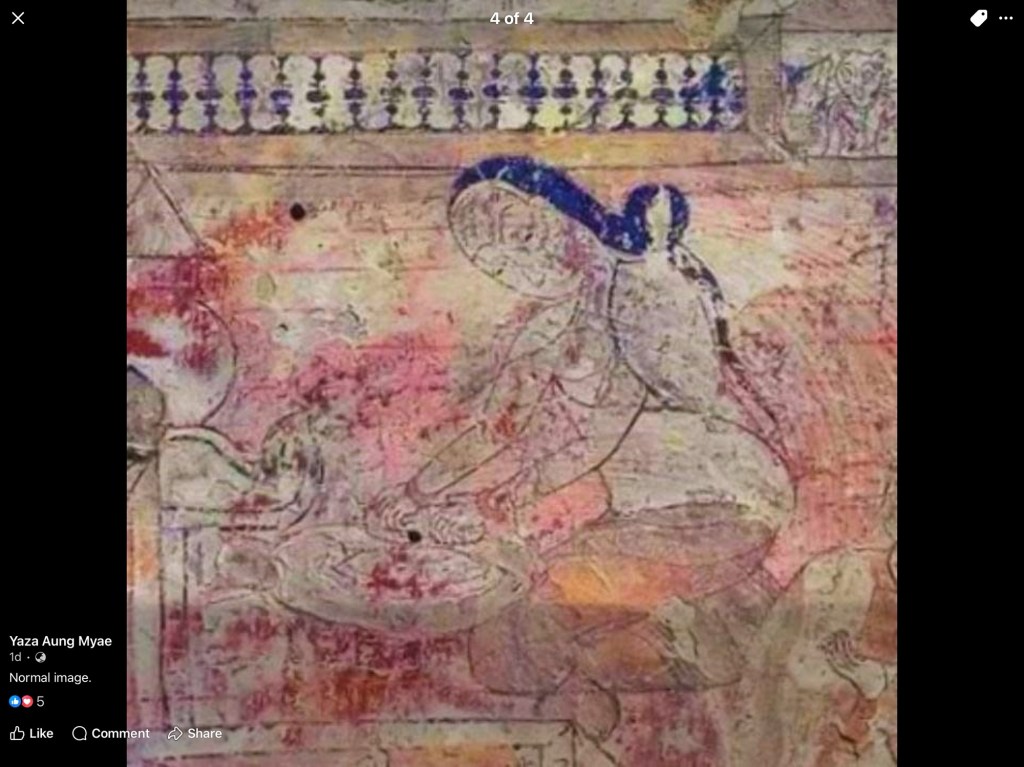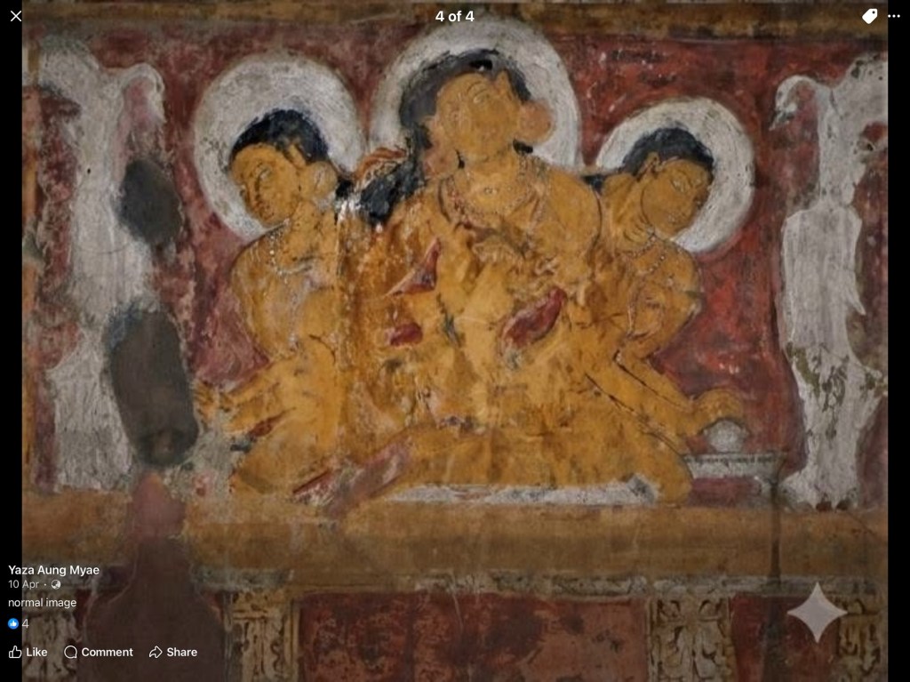 ပုဂံခေတ်နံ့သာတုံးသွေး၍လိမ်းသော နံရံပန်းချီအထောက်အထားပါ။အပါယ်ရတနာဘုရားကပါ။